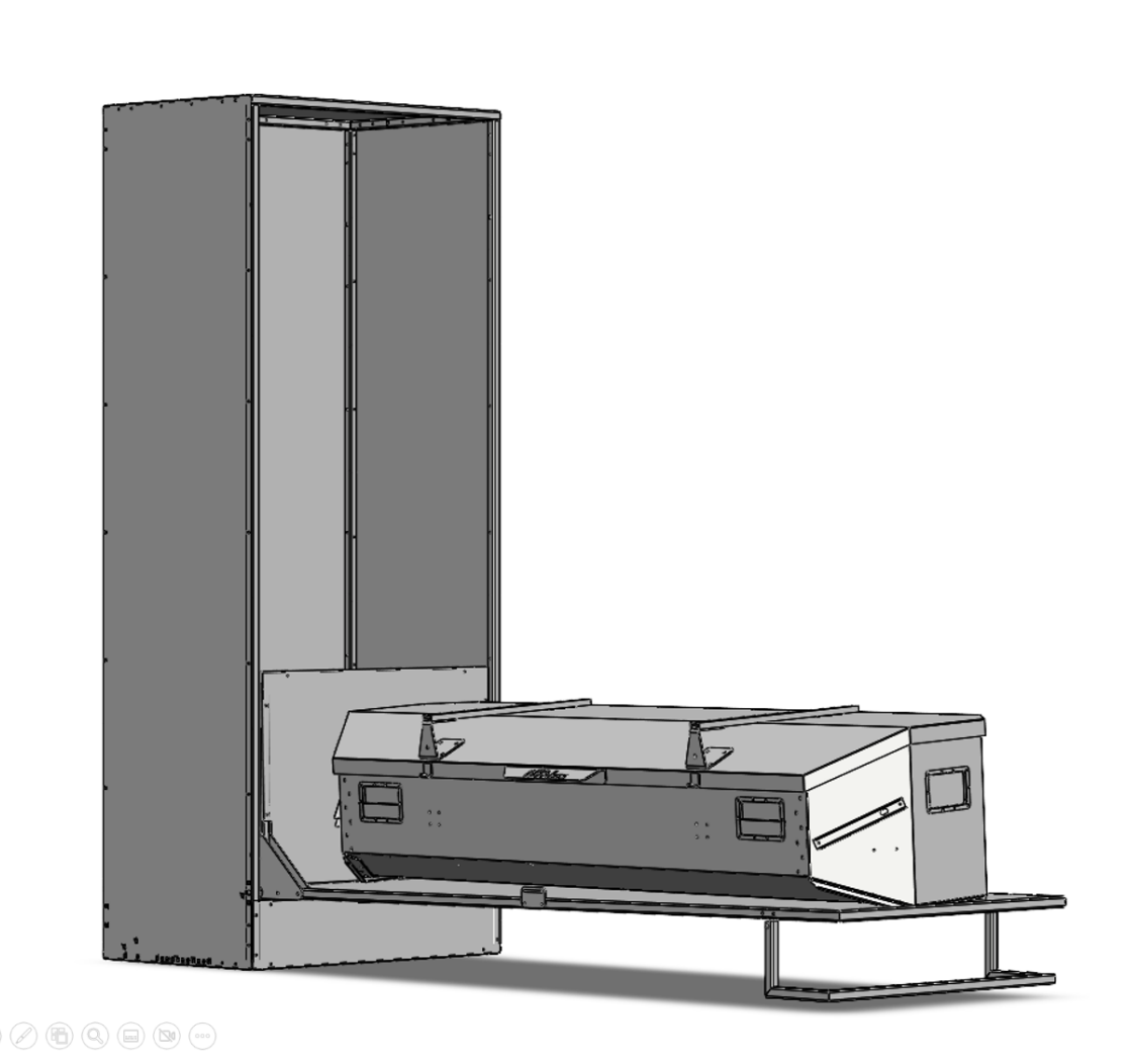 Integrated hydraulicspring mechanisms to assist the user in lifting and lowering the 30 kg box directly to car-height, eliminating the need for a separate trolley and avoiding physical injury to users.